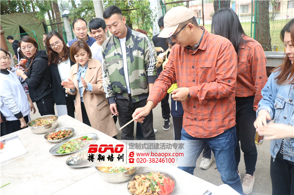 本次活動(dòng)是雙方的第二次合作,相同的是活動(dòng)類型,不同的是活動(dòng)地點(diǎn)。提前一晚入住三水溫泉度假村拓展訓(xùn)練基地的伙伴們,在享受了溫泉的同時(shí),在第二天迎來(lái)他們的第一個(gè)挑戰(zhàn)任務(wù)“廚王爭(zhēng)霸”。一位位顏值爆表、才華橫溢的小伙伴們,以“吃”會(huì)友,用一道道香飄溢人的美食,實(shí)力上演了“舌尖上的眾上日化”。