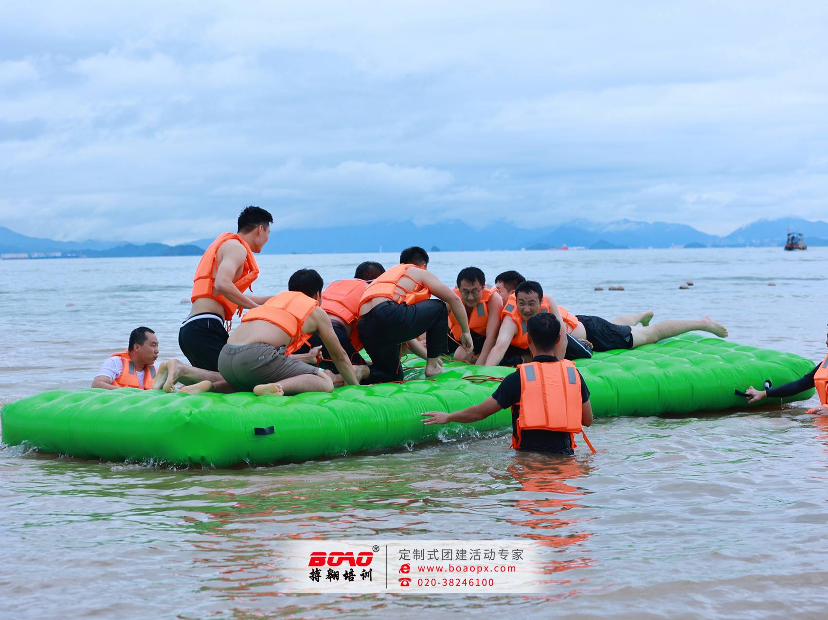 巽寮灣是著名的海濱旅游風(fēng)景區(qū):“全國最佳休閑名鎮(zhèn)”、“全國特色景觀旅游名鎮(zhèn)”、“廣東十大美麗海岸”、“國家4A級旅游景區(qū)”,素有“東方夏威夷”之美譽。那里的優(yōu)美風(fēng)景以奇聞名,海奇、灘奇、山奇、石奇、洞奇,八個海灘相連,沙灘晶瑩細軟,海水清澈,海底坡度平實,百米內(nèi)水深不超過2米,特別是巽寮灣沙灘長達3000多米,綠樹林帶環(huán)境,被譽為"天賜白金堤",是得天獨厚的天然海水浴場。在這夏日炎炎天氣,廣汽研究院和搏翱廣州拓展培訓(xùn)公司也攜手策劃了一場水上運動會。夏日的熱浪滾滾而來,巽寮灣體驗式拓展基地一片清涼的天地,釋放你的活力與激情!本次團建運動會也安排有刺激的水上龍舟、有趣的八仙過海、水上NBA投籃、水上拔河、熱血的沙灘排球,還有激情四溢的沙灘足球。