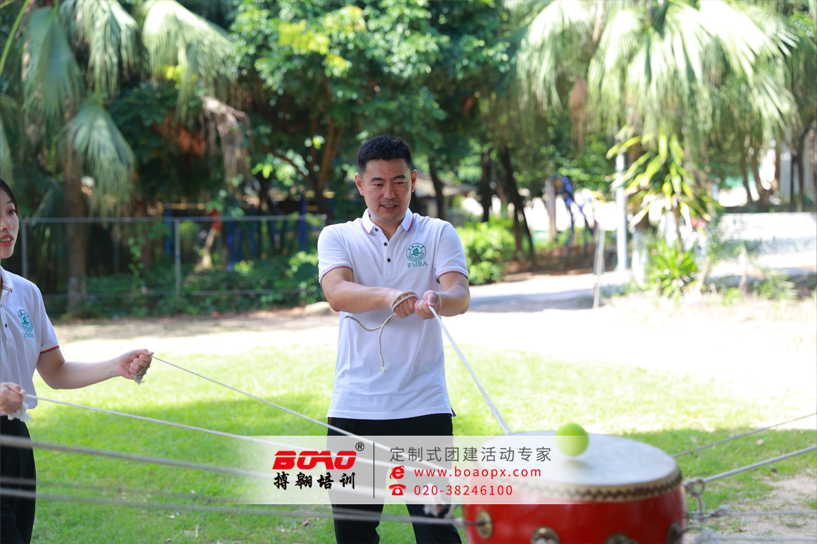 第一天安排項(xiàng)目有美式沙包,戰(zhàn)略眼光的精準(zhǔn)投射這個(gè)看似簡單的投擲游戲瞬間變身商業(yè)決策模擬戰(zhàn)場。學(xué)員們需要像評估投資項(xiàng)目一樣計(jì)算角度、力度和風(fēng)險(xiǎn)。"三分靠運(yùn)氣,七分靠策略"的投資真理在這里展現(xiàn)得淋漓盡致。驛站傳書即是信息傳遞的 商戰(zhàn)啟示,當(dāng)信息需要經(jīng)過多人傳遞時(shí),如何保證不失真?這個(gè)游戲讓EMBA學(xué)員們深刻體會到:在企業(yè)戰(zhàn)略執(zhí)行中,信息衰減可能帶來災(zāi)難性后果。極限時(shí)速則是效率革命的實(shí)戰(zhàn)演練,在規(guī)定時(shí)間內(nèi)內(nèi)完成任務(wù)的挑戰(zhàn),讓這群平時(shí)運(yùn)籌帷幄的商業(yè)領(lǐng)袖們體驗(yàn)了一把"創(chuàng)業(yè)公司節(jié)奏"。第二天拓展則是領(lǐng)導(dǎo)力與創(chuàng)新思維的碰撞,第一個(gè)項(xiàng)目就是鼓舞飛揚(yáng),鼓需要多人協(xié)同操作,像極了企業(yè)各部門的協(xié)同運(yùn)作。第二個(gè)就是飛盤躲避賽,敏捷應(yīng)對市場變化,在快速移動中既要進(jìn)攻又要防守,像極了瞬息萬變的市場環(huán)境。最后一個(gè)項(xiàng)目就是七巧板,鍛煉資源整合的商業(yè)智慧,,組在不知情的情況下被分配了不完整的拼圖資源,最終發(fā)現(xiàn)需要資源共享才能完成任務(wù)。這個(gè)設(shè)計(jì)精妙的游戲讓學(xué)員們深刻體會到商業(yè)生態(tài)中合作共贏的重要性。